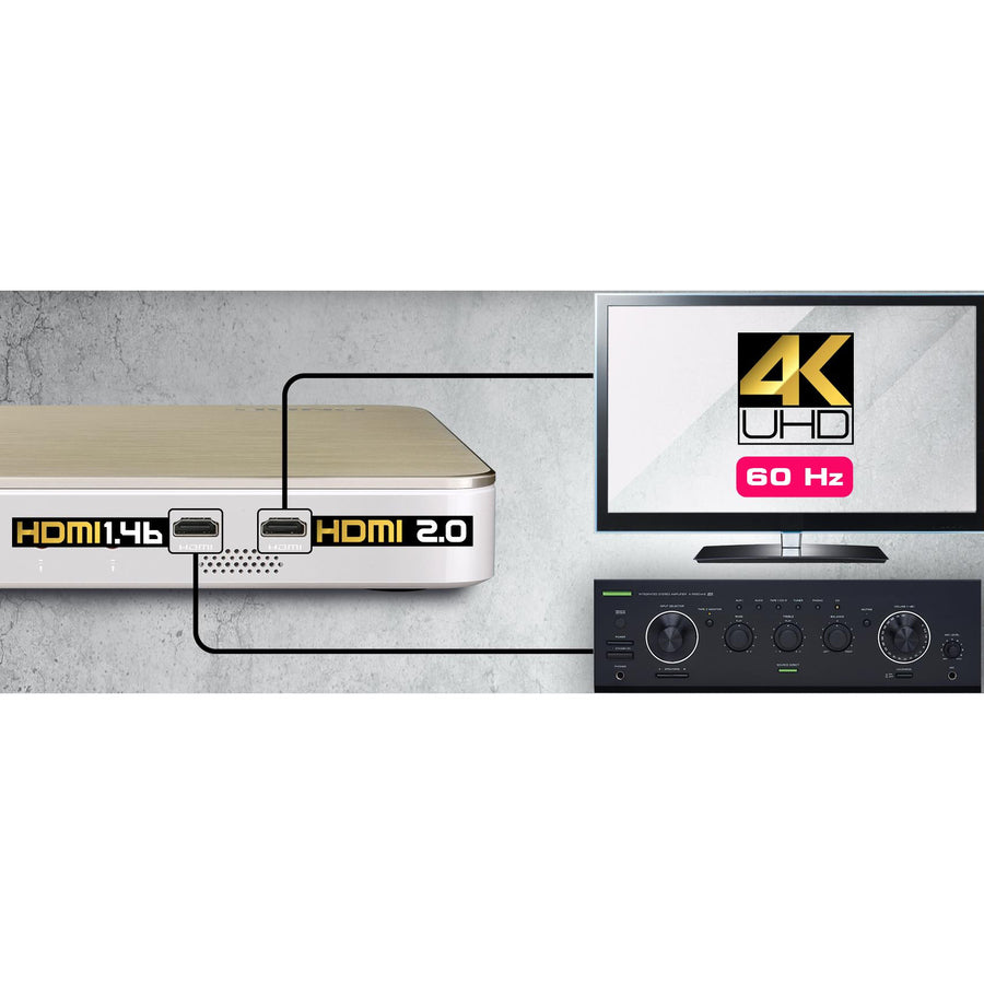 HDMI 2.0/1.4 outputs for direct 4K HD media playback. Supports 4K media streaming and transcoding.