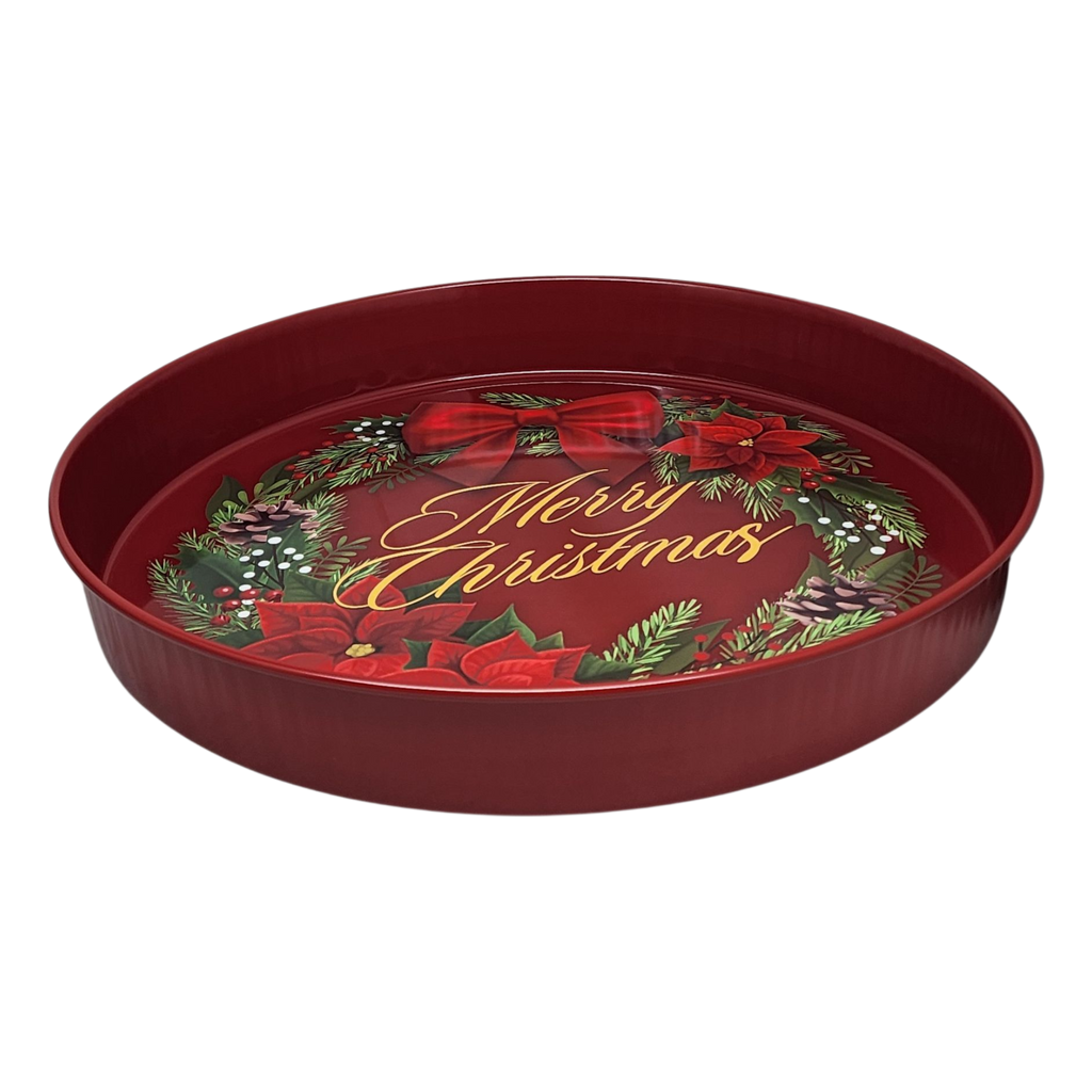 Use the Merry Christmas Wreath Serving Tray to serve cookies, appetizers, or punch at your holiday parties, while also making a striking decorative piece for your home. This tray can also be transformed into a charming gift basket base—fill it with homemade goodies or holiday essentials for a thoughtful present. No matter how you choose to use it, this tray serves as a lovely reminder of the joy and togetherness that come with the Christmas season.