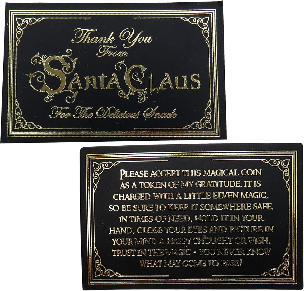 Each coin comes with a heartfelt card expressing gratitude from Santa for the delicious snacks left out on Christmas Eve. The message encourages a sense of magic and wonder, reminding us to believe in the spirit of the season. It offers a simple yet powerful message: in times of need, hold the coin in your hand, close your eyes, and envision your wishes coming to life. This unique charm carries the essence of holiday hope and joy, making it a treasured keepsake for years to come.
