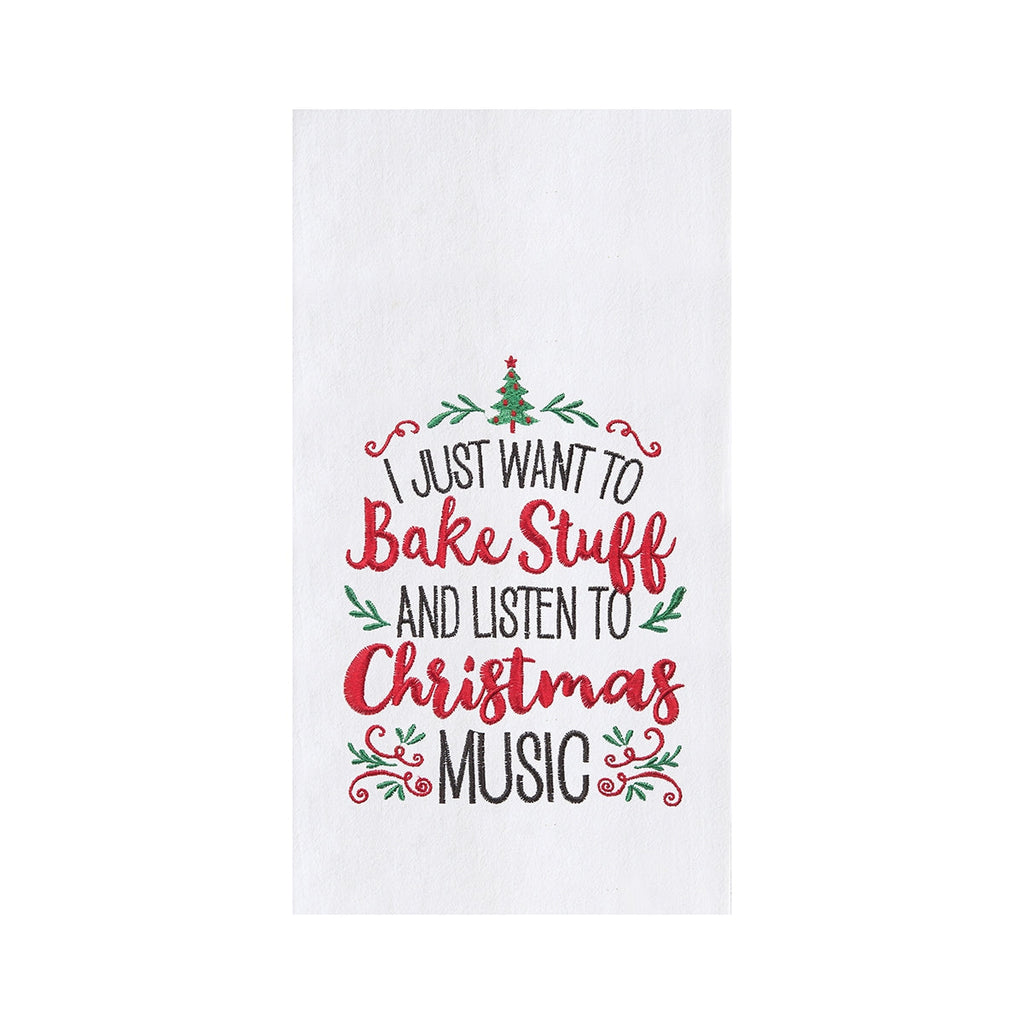 Embrace the joy of the holiday season with this charming kitchen towel, designed for those who live to bake and groove to Christmas tunes! Measuring just over 27 inches by 18 inches, this delightful 100% cotton towel showcases a whimsical saying that perfectly captures the essence of festive cheer: "I just want to bake stuff and listen to Christmas music." Whether you're frosting cookies or savoring the sweet aromas from the oven, this towel is here to support your culinary escapades while adding a touch of holiday flair to your kitchen.