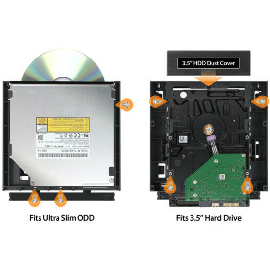 - Fits 1 x 3.5" device / hard drive and 1 x Ultra-Slim ODD