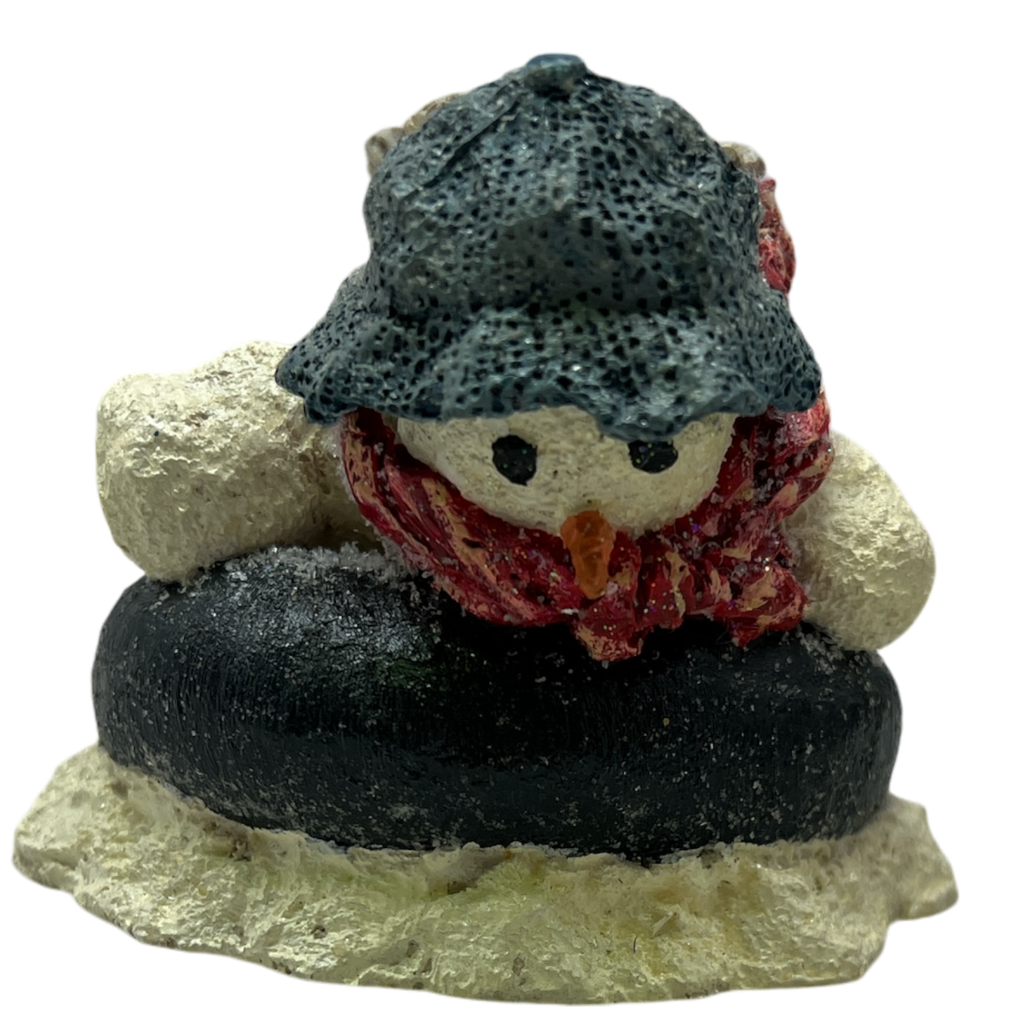 Add a whimsical touch to your winter decor with the "I'm Going To Catch You" MeKenna Angel Figurine. Each figure captures the playful spirit of the holiday season, featuring an adorable snowman donning a cozy blue hat and a vibrant red scarf, ready for adventure. This diminutive figure, standing at almost 3 inches tall, perfectly complements any festive setup, from mantelpieces to tabletops.