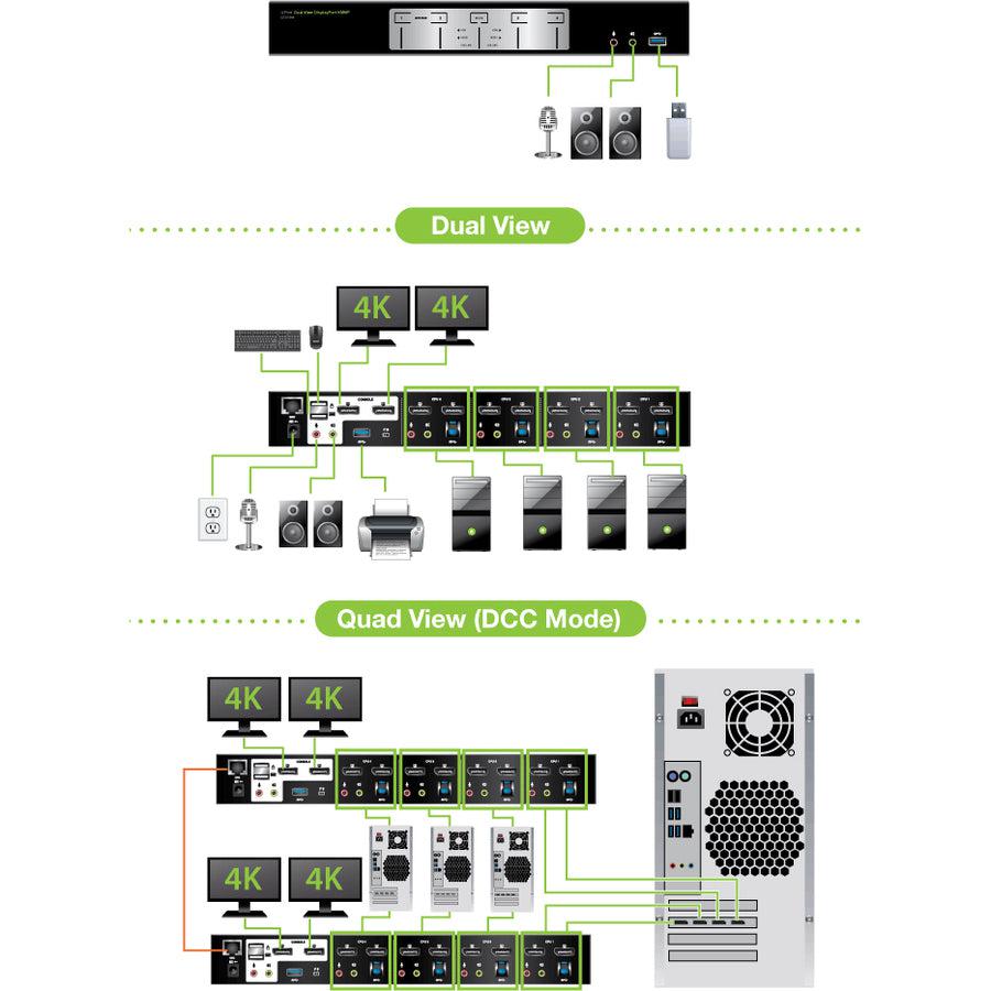 - Operate 4 DisplayPort computers with 1 keyboard, mouse, and 2 monitors