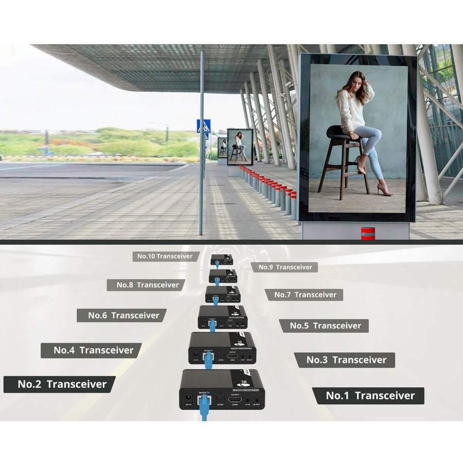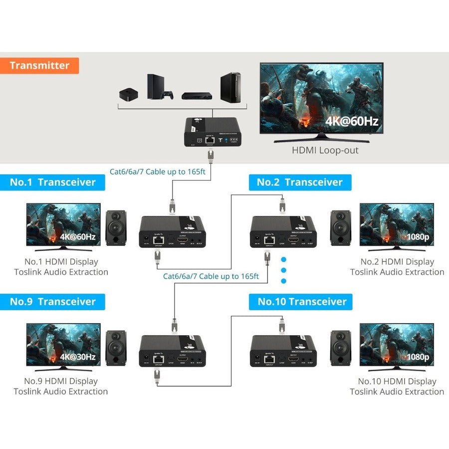 Daisy Chain Extension - Supports daisy chain connection of up to 10 transceivers to further extend HDMI signal up to 165ft to each transceiver -