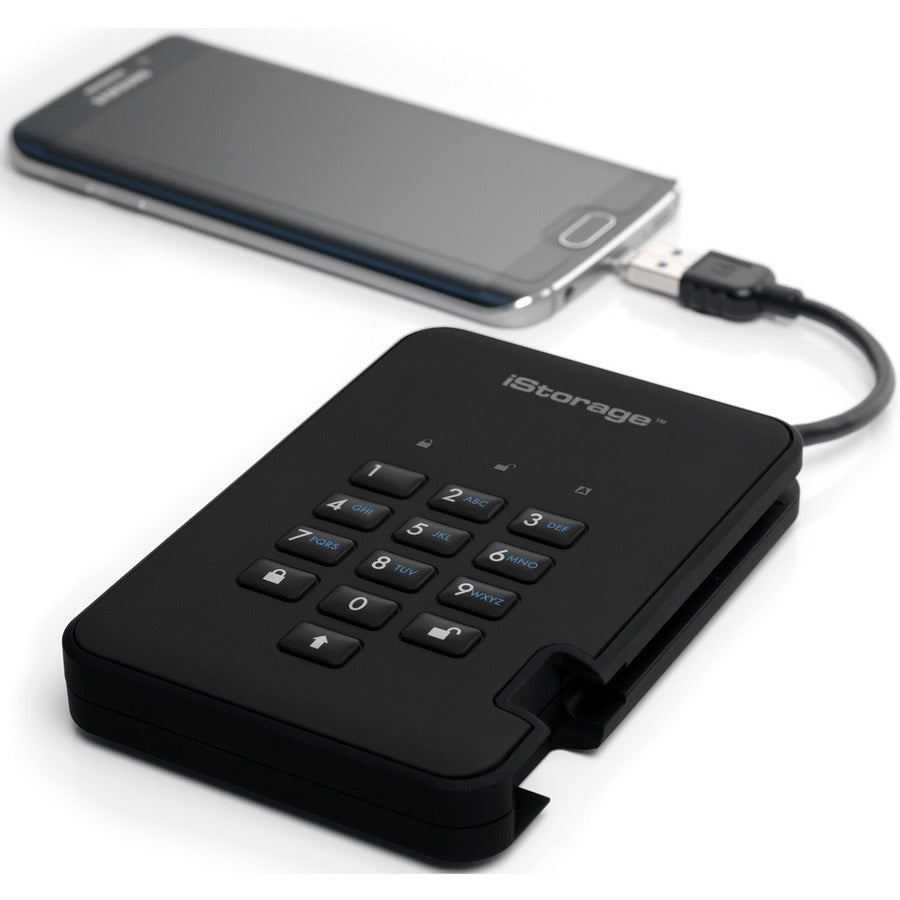 iStorage diskAshur2 1 TB Portable Rugged Hard Drive - 2.5" External - Phantom Black - TAA Compliant