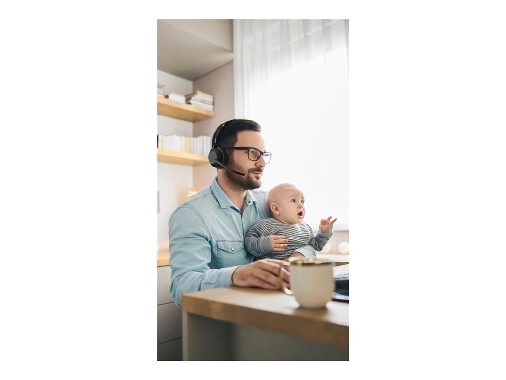 We've all had one of those days. A buzzer-happy delivery driver arriving mid-conference call. The kids screeching about snacks just as you're about to seal the deal. Your dog barking in the background of that crucial client chat. Enter Evolve2 55. Its powerful Active Noise Cancellation (ANC) has a novelty acoustic chamber design and a specially-designed chipset, plus 2 premium noise-cancelling microphones, to effectively silence your surroundings. So you can get on with making hybrid work, work for you.