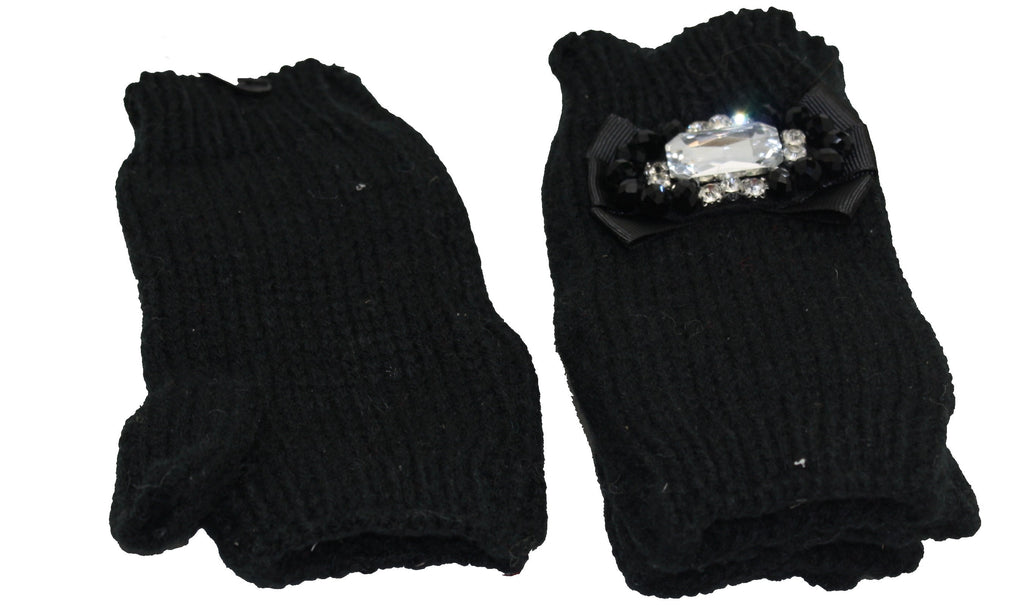 Add a touch of glamour to your look with these beautiful jeweled black fingerless gloves. Perfect for adding a bit of sparkle and shine to any outfit!