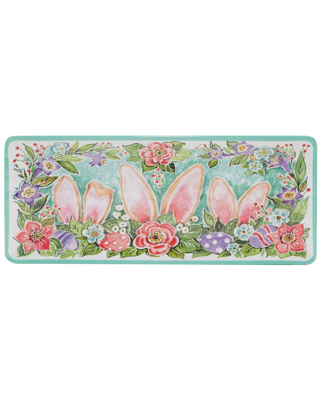 Joy Of Easter Rectangular Platter. Measures 19" x 8", great for serving and entertaining during the Easter season. Made from heavyweight durable melamine and is dishwasher safe for easy clean up.