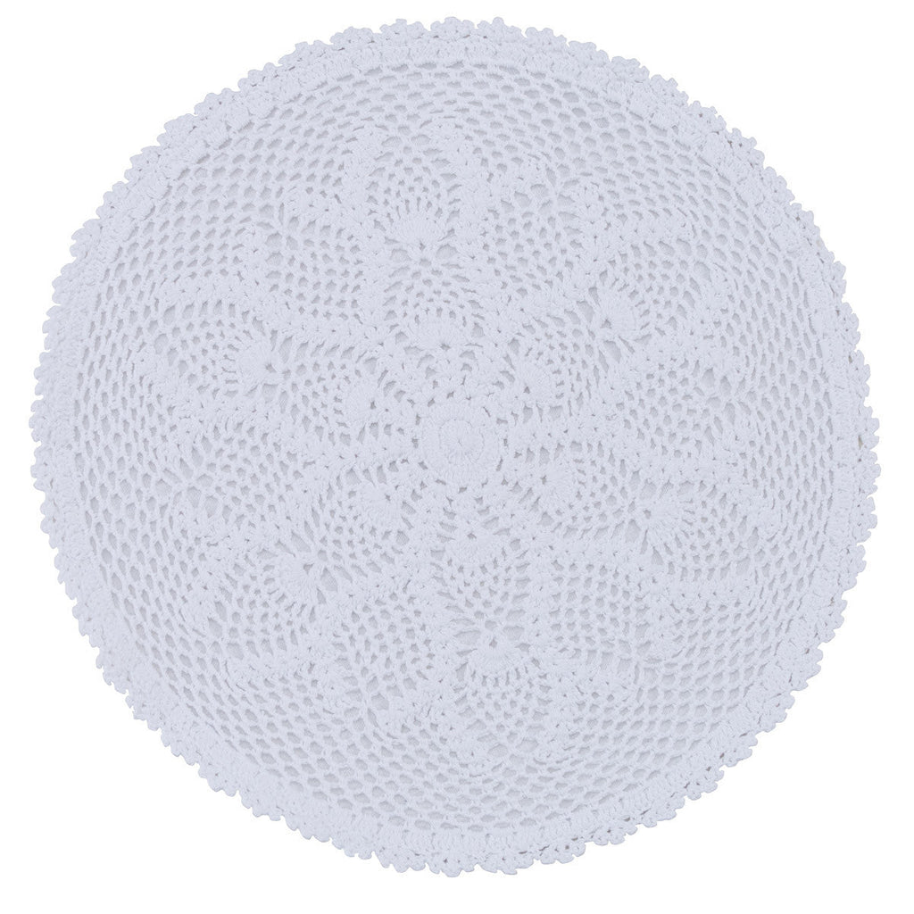 Add a touch of timeless elegance to your dining experience with the exquisite "Kadia Crochet Lace Round Placemat." Measuring approximately 15 inches in diameter, this beautifully crafted placemat showcases intricate crochet detailing that speaks to both craftsmanship and vintage charm. The delicate lace design brings a warm, inviting feel to any table setting, perfect for elevating your holiday dinners or special family gatherings.