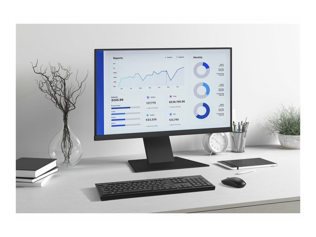 The KB270 EQ Rechargeable Keyboard is a reliable value-for-money wireless keyboard featuring at least 62% post-consumer recycled (PCR) plastic.* Windows and macOS compatible, it offers stable 2.4GHz connectivity secured with AES 128-bit encryption and Bluetooth connection options. Built to support productivity, the full size ANSI/ISO keyboard with membrane switches includes a numeric keypad and a dedicated Copilot AI assistant key**. Convenient LED indicators provide visual confirmation of battery-life, num lock, caps lock, and pairing. A spill-proof design protects the keyboard electronics from accidental spills from coffee, water, and other liquids. Wipe down protection certified and delivered in Forest Stewardship Council (FSC ) certified packaging. Includes 3-year limited warranty.