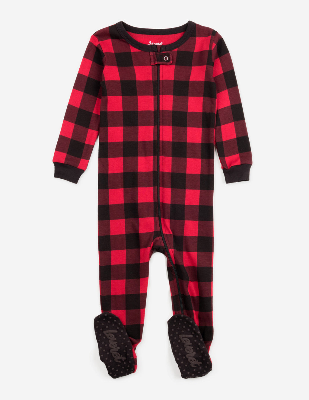 Get your little ones ready for the coziest sleep! Made from a lightweight ultra-soft cotton, our Black And Red Plaid Baby Footed Pajamas are bound to be a favorite all season round. Keep their toes warm with a footed grip to follow them around on all their adventures. Comes in a variety of striped styles. These pajamas should fit snugly, please size up if your child is above average. As a natural product, cotton may shrink in the wash.