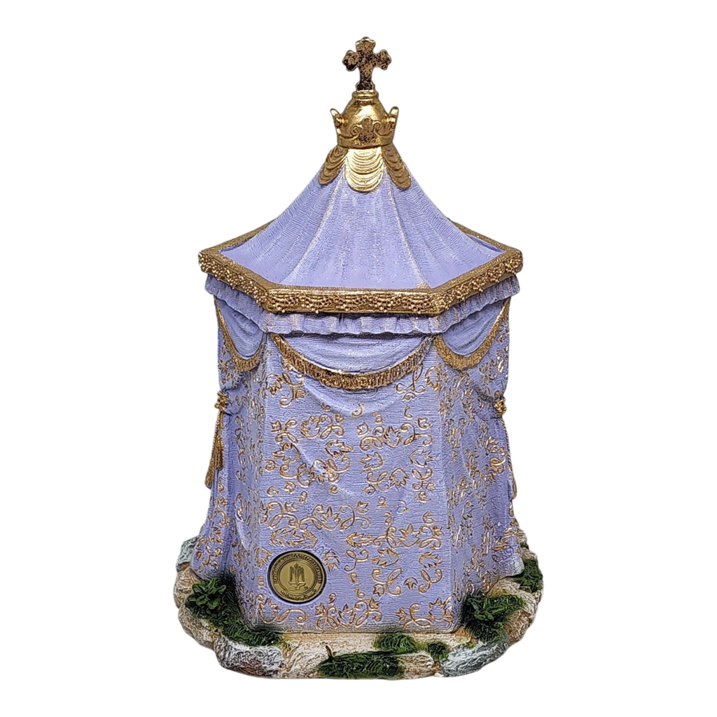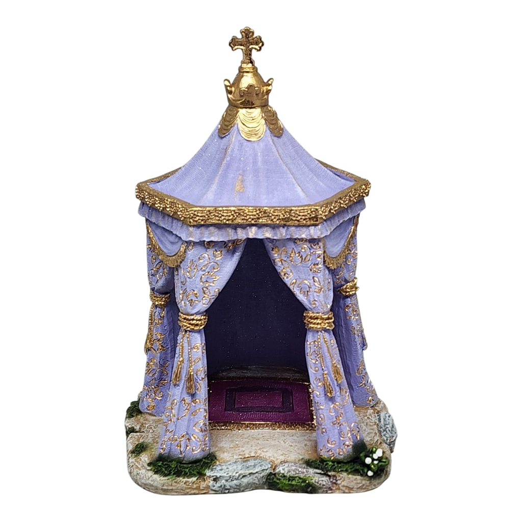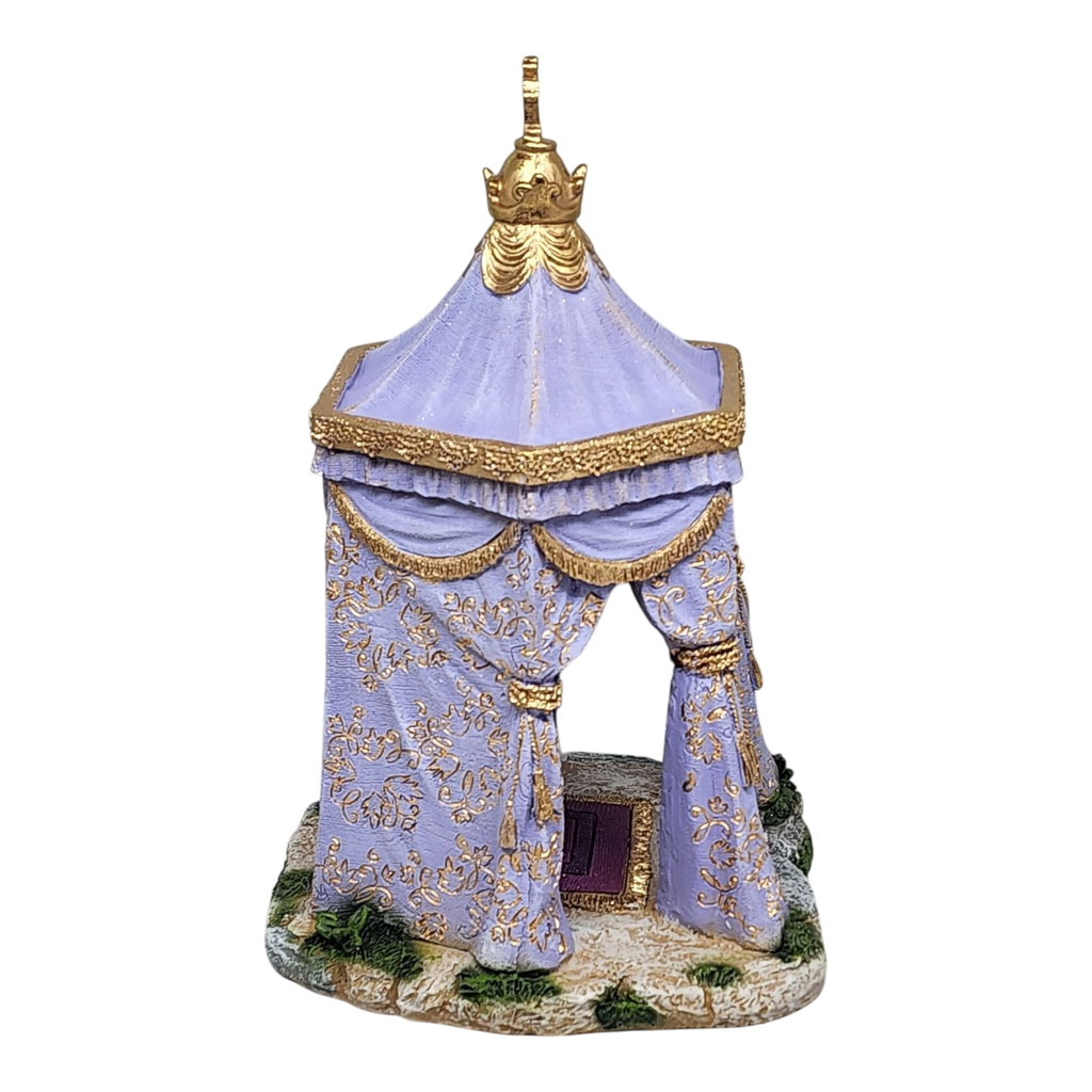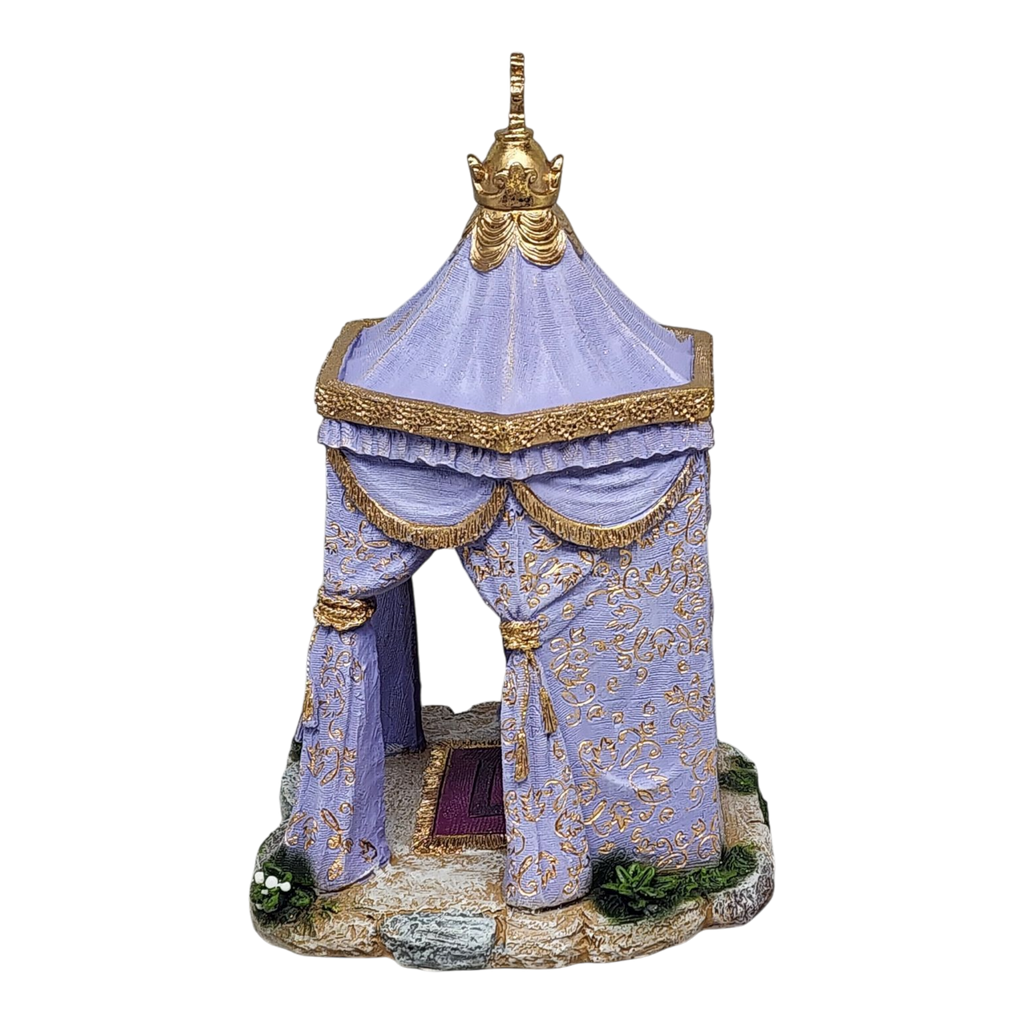 Bring the elegance of the Nativity to your home with King Gaspar's Tent from Fontanini, a striking piece that stands tall at just over 11 inches. This intricately crafted tent showcases soft lavender hues and is adorned with luxurious golden details, making it the perfect setting for one of the three Magi who traveled far to honor the birth of Jesus. The meticulous artistry reflects the esteemed craftsmanship of Fontanini, hailing from Italy, ensuring this piece is not only beautiful but also steeped in tradition.