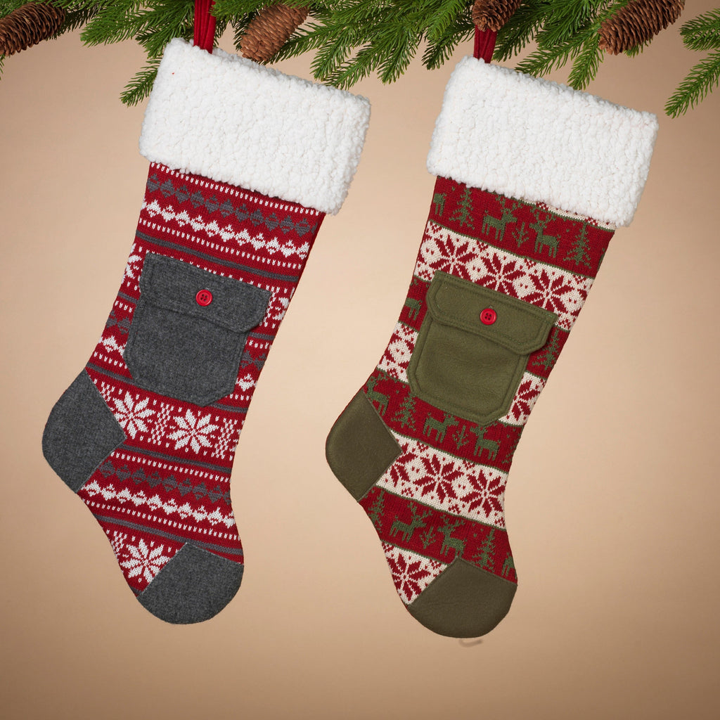 21.5-Inch Tall Knitted & Fleece Stocking with Sherpa Cuff