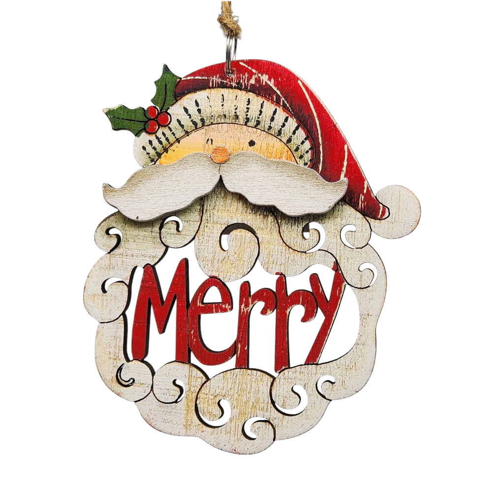 Bring a touch of whimsy to your holiday decor with our delightful Merry Santa Beard Ornament! Measuring approximately 4 inches by 3.25 inches, this charming ornament features a whimsical representation of Santa's beard, complete with intricate swirls and a cheeky "Merry" integrated into the design. Topped with a classic red Santa hat adorned with a festive holly accent, this ornament adds a playful element to your Christmas tree or holiday displays.