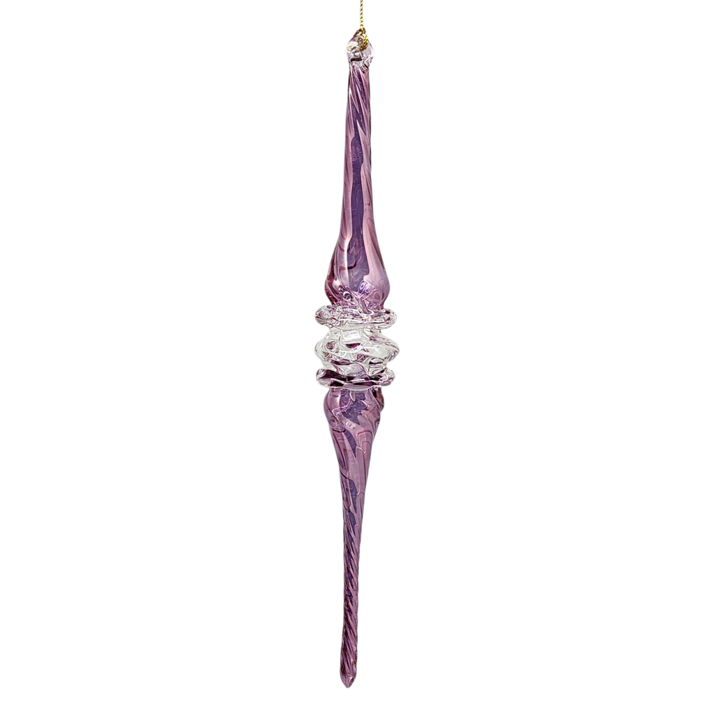 Perfect for the winter holidays, this lavender tone offers a refreshing alternative to traditional red and green decorations, evoking the serene frost-tinted dawns of the season. With its slender shape and frosty color, it’s like a frosty icicle captured in glass, making it a lovely ornament to celebrate the magic of winter celebrations.