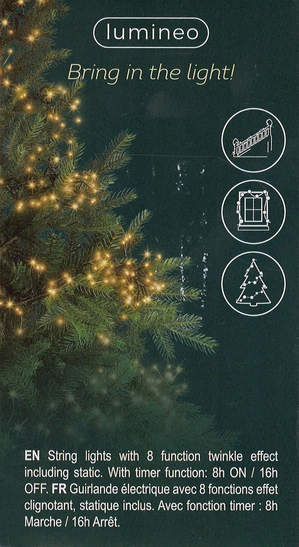 Designed with convenience in mind, these string lights include a timer function that allows for 8 hours of illumination, followed by 16 hours off, ensuring hassle-free operation. Their classic warm glow adds a touch of elegance to your decor, while the flexible, green cable blends seamlessly with your environment. These lights not only enhance the beauty of your space but also make your celebration memories truly sparkle!