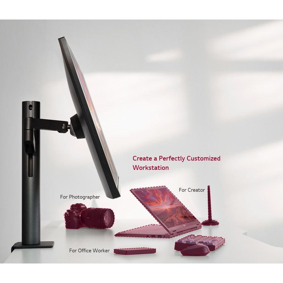 Compatible with virtually every posture The Ergo is a welcome innovation for anyone who spends a significant amount of time at their desk. LG’s technologically and ergonomically advanced stand helps to promote good posture through its high degree of adjustability, enabling each user to create a customized workstation.