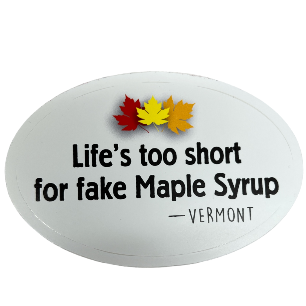 Capture the essence of Vermont’s authenticity with this charming oval decal, a must-have for maple syrup enthusiasts and lovers of genuine flavors. Measuring 3.5 inches by 5.5 inches, this delightful sticker proudly declares, "Life’s too short for fake Maple Syrup," a sentiment that resonates with anyone who appreciates the pure, robust taste of real Vermont maple syrup.