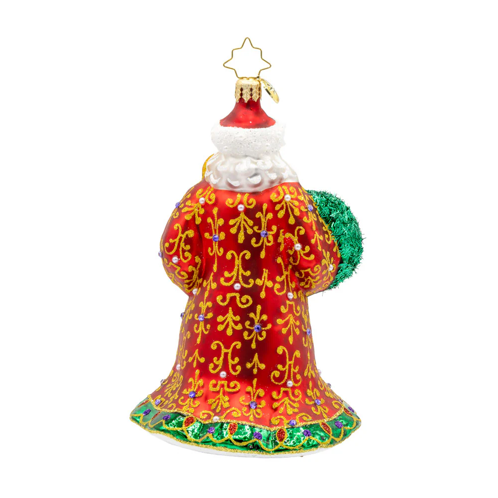 Illuminate your holiday celebrations with the captivating Light Of The Season ornament! This exquisite piece features Santa radiating warmth and cheer as he holds a beautifully adorned wreath in one hand and a glowing candle in the other. Clad in a richly embellished robe adorned with intricate patterns, Santa embodies the spirit of giving and light that shines throughout the festive season. This ornament beautifully captures the essence of holiday traditions, celebrating the warmth and joy brought by both family gatherings and the festive spirit of Christmas.