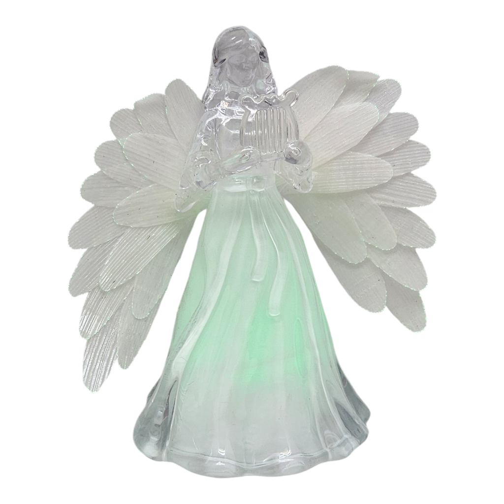 Add a touch of enchantment to your holiday decor with this exquisite color-changing LED angel. Standing just under 5 inches tall this ethereal figurine radiates a serene glow that transitions through soft pastel shades creating a peaceful ambiance for any festive setting. Crafted from durable acrylic its delicate wings and graceful posture make it a charming centerpiece that embodies the spirit of Christmas.