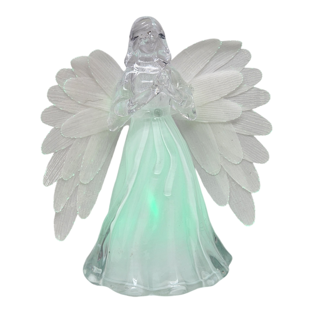 Add a touch of enchantment to your holiday decor with this exquisite color-changing LED angel. Standing just under 5 inches tall this ethereal figurine radiates a serene glow that transitions through soft pastel shades creating a peaceful ambiance for any festive setting. Crafted from durable acrylic its delicate wings and graceful posture make it a charming centerpiece that embodies the spirit of Christmas.