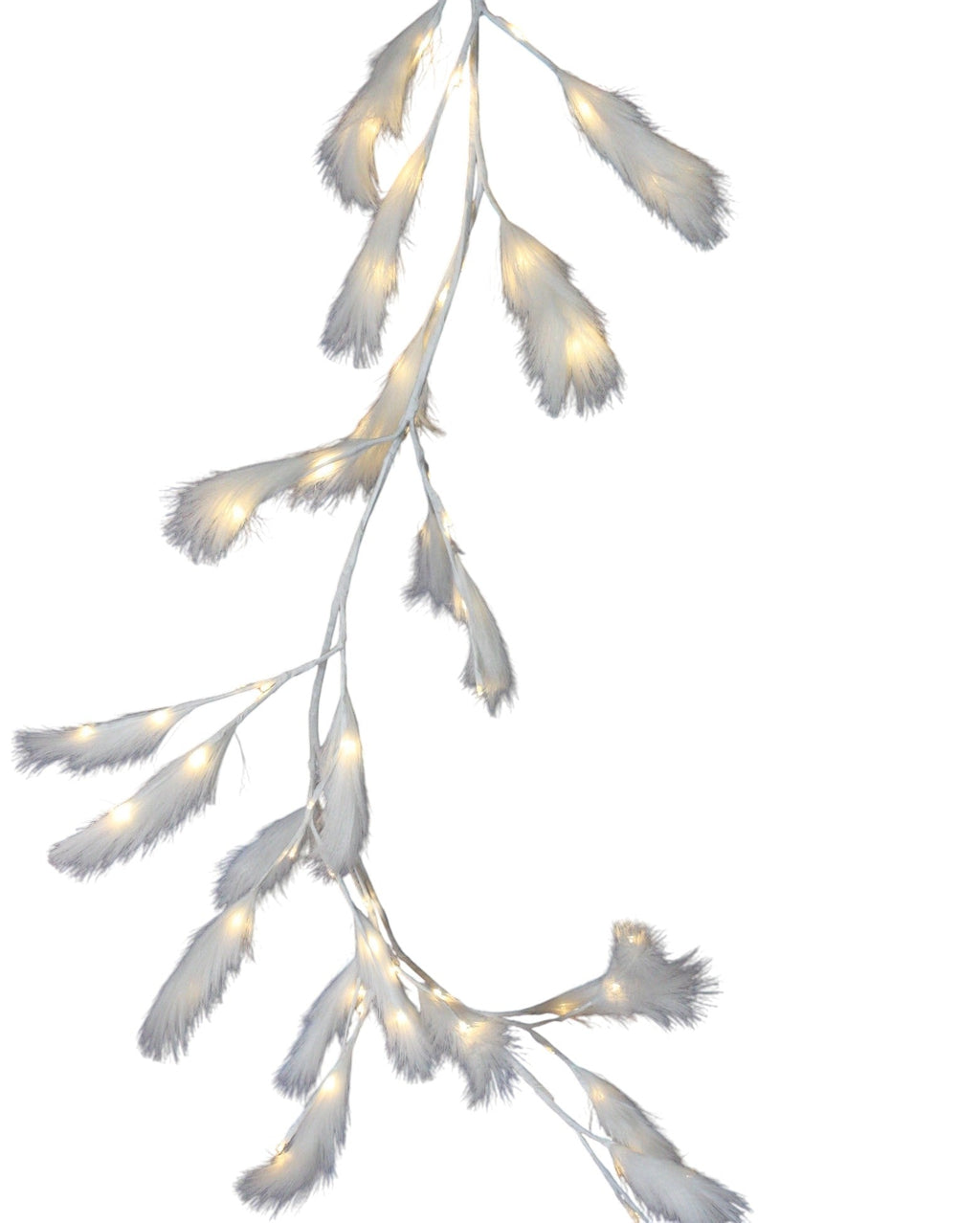 Browse the Complete Gifts & Holiday Collection Take your decor to the next level and beyond! 72 Inch long Garland with stark White 'Feather' branches lit with contrasting warm white LED Lighting.