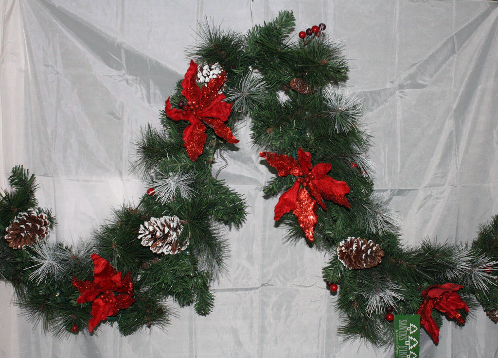 Decorate your Mantle, door, window or railing with this full Poinsettia Garland. Accented with berries and pinecones, and lit from within by warm white lighting.
