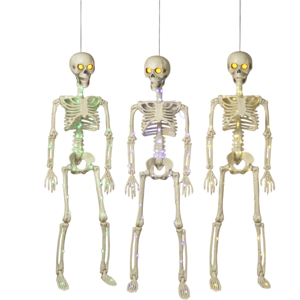 Powered by 3 AAA batteries (not included), these skeletons are not only lifelike in their appearance but also versatile enough to fit any Halloween theme. Picture them greeting trick-or-treaters at your front door, part of a spooky party setup, or as eerie décor that surprises and entertains. Their playful movements and glowing eyes will surely be the highlight of your Halloween decorations, providing both thrills and laughter throughout the spooky season. Add the Hanging Animated Skeletons to your collection and make this Halloween one to remember!