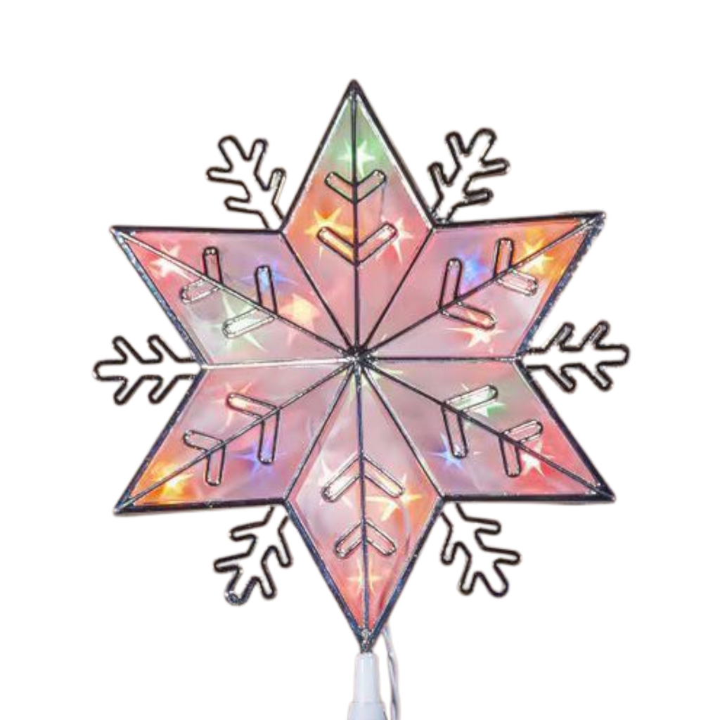 Bring a vibrant touch to your festive décor with this enchanting Colorful Snowflake Tree Topper, a dazzling addition that shines bright from the top of your Christmas tree! Standing 10 inches tall, this gorgeous snowflake features an array of colorful lights that twinkle and dance, creating a magical ambiance in your home. With 20 lights illuminating its intricate design, this topper captures the essence of winter wonder, making it the perfect finishing touch that enhances the charm of your holiday celebrations.