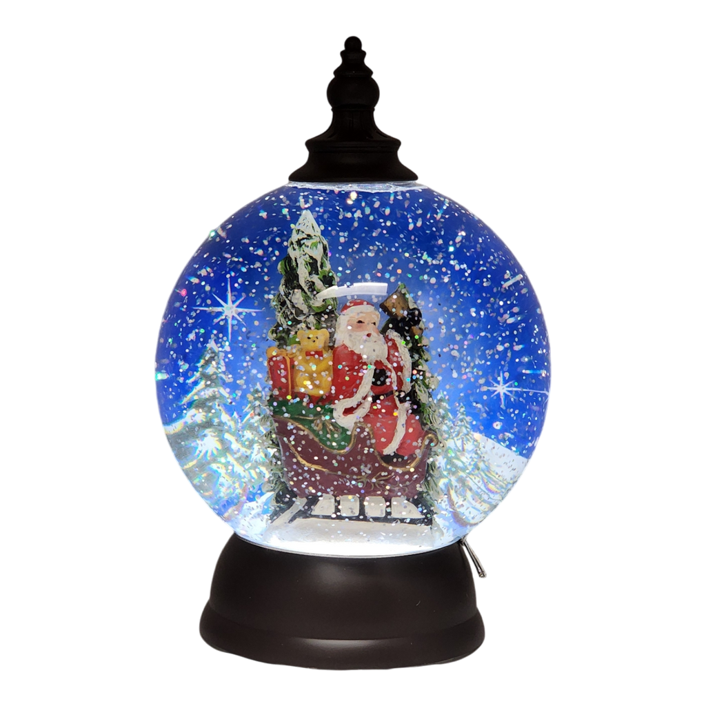 Embrace the spirit of the holidays with our enchanting Santa Claus Lighted Snow Globe. Standing over 9 inches tall, this delightful decoration captures the timeless magic of Christmas. Inside the globe, a jolly Santa, surrounded by a sleigh full of gifts under a blanket of glistening snow, is ready to bring joyful cheer to your home. Battery-operated for ease and convenience, it offers a splendid radiance that enhances its charm and detail.