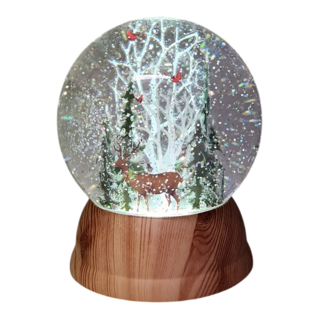 Step into a serene winter landscape with our breathtaking Woodland Wonder Snow Globe! At 6 inches tall, this enchanting globe features a majestic deer standing delicately among snow-dusted trees, all surrounded by a flurry of shimmering glitter that replicates the magic of a snowy forest. The scene is brilliantly illuminated, creating a soft glow that further enhances its tranquil atmosphere. It’s a captivating decoration that brings the essence of the great outdoors right into your cozy home.
