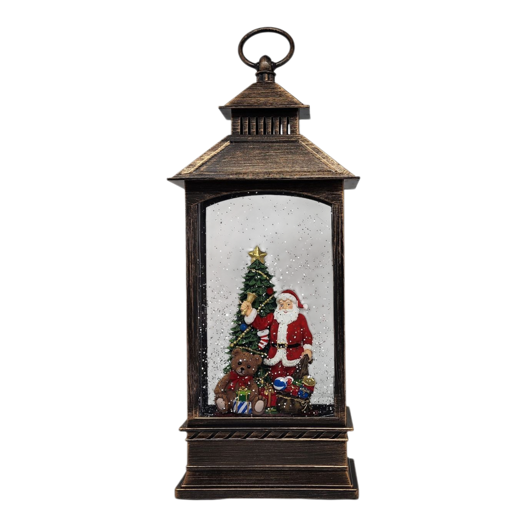 Santa Delivering Gifts Lighted Spinning Waterglobe Lantern