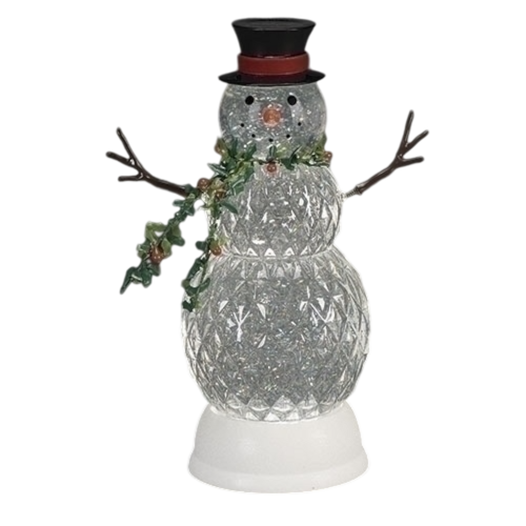Bring winter magic into your home with our enchanting 11-inch Light-Up Snowman Water Globe! This delightful decoration features a charming snowman with a glittering interior that swirls beautifully when lit up. Decorated with a top hat, a festive garland scarf, and branch arms, this snowman adds a heartwarming touch to your holiday decor.