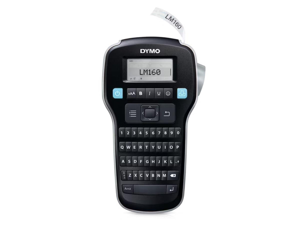 LabelManager 160 lets you format your labels fast with one-touch smart keys. Computer-style keyboard offers fast text entry. Large, 13 character x 1 line display shows text effects on screen before you print up to two lines with a maximum print height of 22.7 point. Choose from 6 font sizes, 8 text styles, 4 boxes and 228 symbols and clip art images. Reprint last label, without retyping using last-label memory feature. Stylish, easy-to-use label maker also includes vertical printing, a manual tape cutter, and 1/2" black/white starter D1 cassette. Maximize battery life with auto power-off feature that turns off label maker when not in use. Label maker uses Dymo D1 labels in 1/4" , 3/8" and 1/2" widths and operates on six AAA batteries or AC adapter. Batteries and adapter are not included.