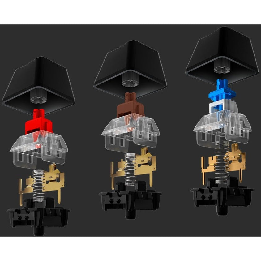 Advanced GX mechanical switches-engineered and 100% tested for performance, responsiveness, and durability. Choose from three distinct mechanical switches- GX Blue (Clicky), GX Brown (Tactile), GX Red (Linear).