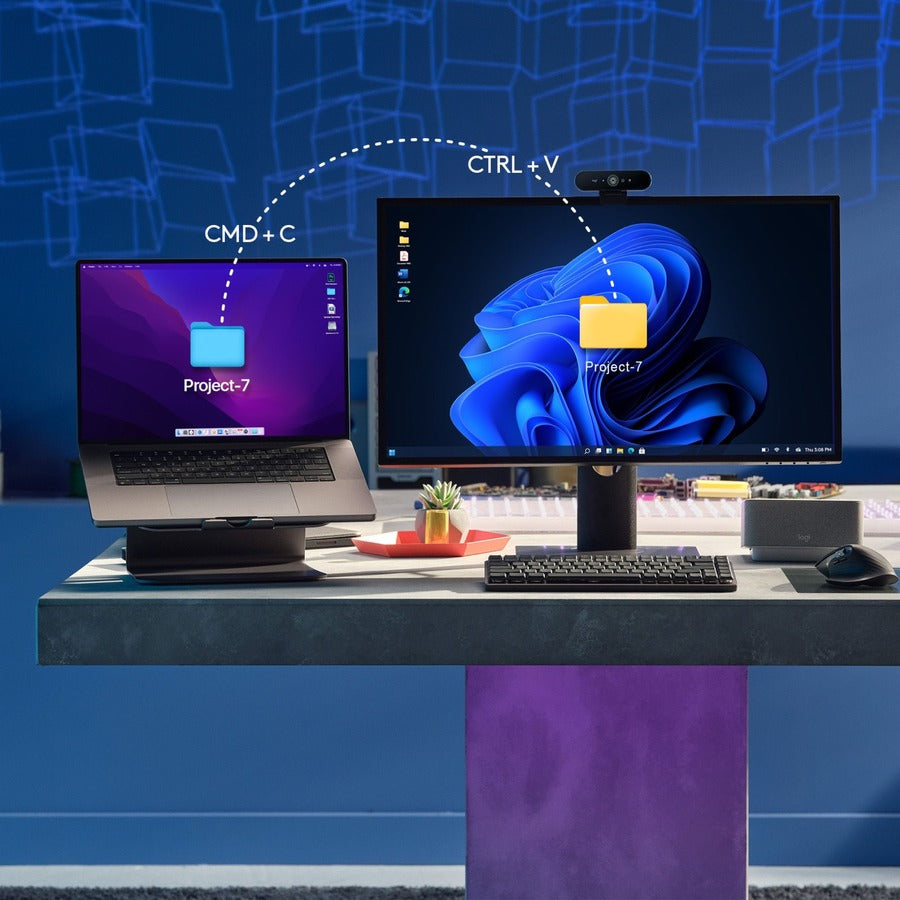 Installing Logi Options+ software enables Logitech Flow when paired with an MX mouse. Your MX keyboard follows your mouse through devices, allowing you to control multiple computers, in multiple operating systems, in one fluid workflow.