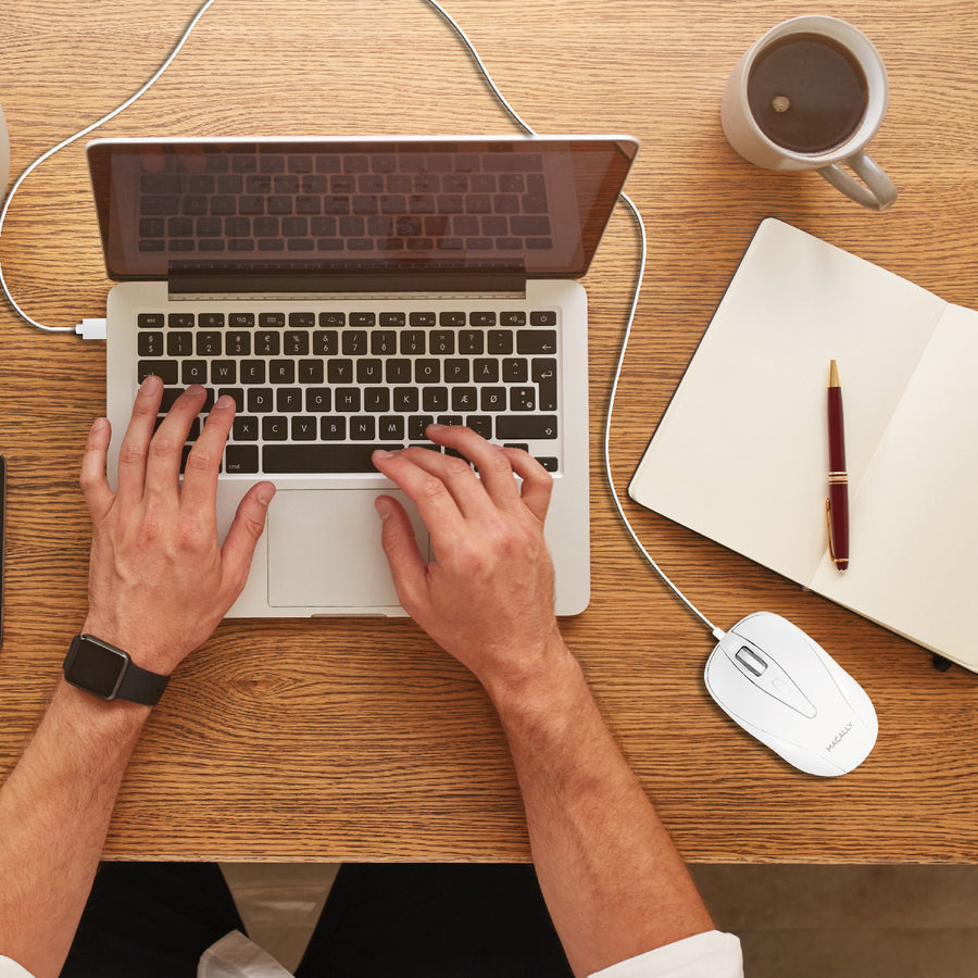 The Macally TURBO is an optical USB wired mouse with a 1000 dpi optical sensor, three soft-click buttons and scroll wheel for a precise and smooth control.