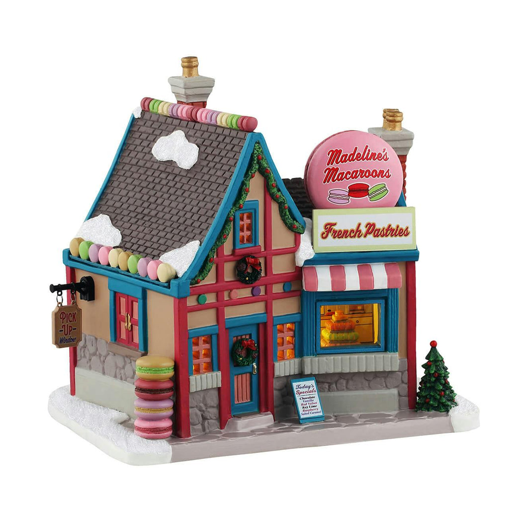 Crafted from high-quality porcelain, Madeline's Macaroons is more than just a charming decoration; it's a celebration of community and culinary delights. With an easy on/off switch and an LED bulb for illumination, this delightful bakery lights up your Christmas village, spreading warmth and cheer to all who pass by. Add this enchanting pastry shop to your holiday display, and let it serve as a reminder of the sweet moments shared with loved ones, embracing the magic of the season in every colorful detail.