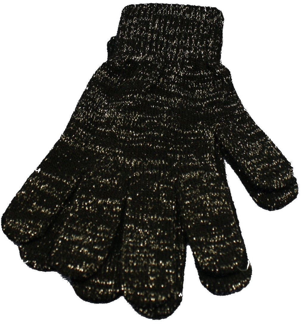 Keep your hands warm and stylish this winter with these one-size-fits-most black knit gloves featuring silver glitter accents. Perfect for any occasion, these gloves will be sure to add a touch of sparkle to your look!