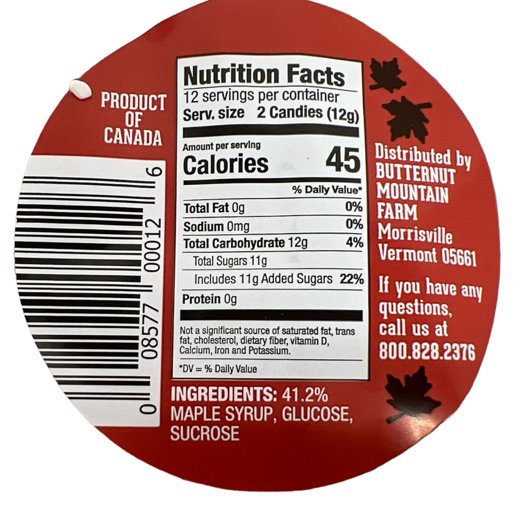 Made with over 40% pure maple syrup – as much maple syrup as you’ll ever find in a hard maple candy.