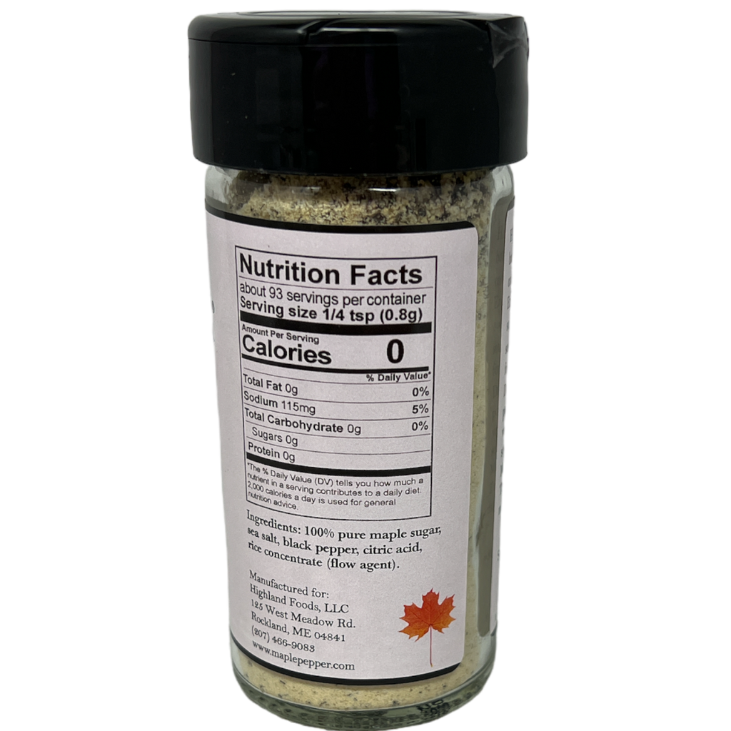 Pure, simple ingredients. Maple Pepper Seasoning made with pure maple sugar. 2.6 oz