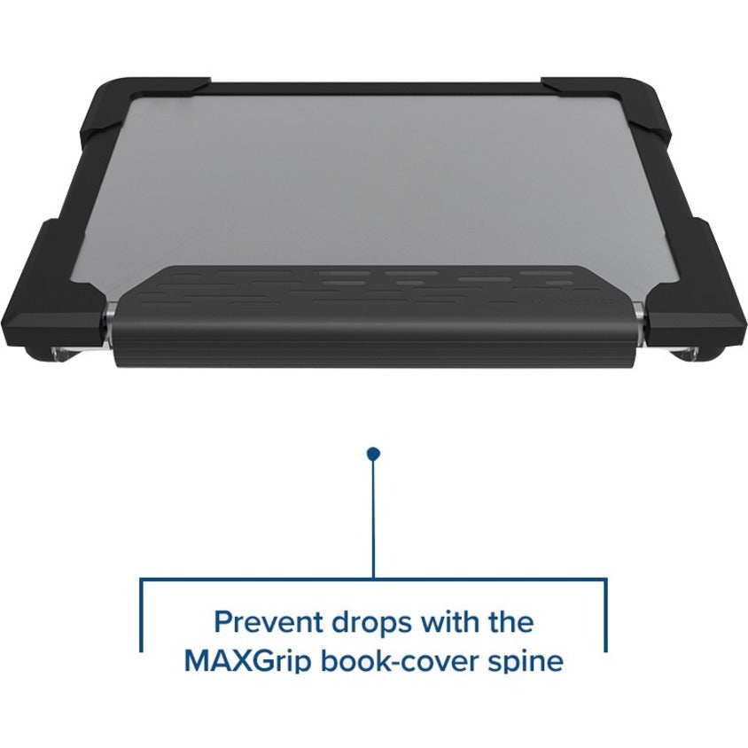 This tough, wrap-around case takes our popular Extreme Shell to new levels of protection and functionality with our new MAXGrip spine. Sporting rugged bumpers and overlap corners, the S model adds protection and functionality with an easy-grip, book-cover spine, designed to also protect the vulnerable hinge area. This wide, textured surface provides more secure carrying, delivering added insurance against drops. The rigid top and bottom panels made of compound polycarbonate, thermoplastic and polyurethane protect against scratches and impact damage. With a snug, perfect fit, the Extreme Shell-S supports all device functions and provides easy port access. Custom colors and MAXProtec antibacterial upgrade available with minimum quantity of 500 (additional fees apply).