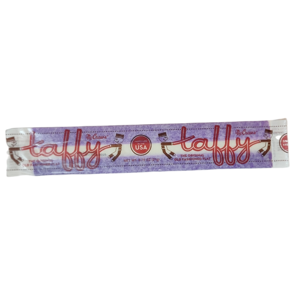 McCraw's Giant Old Fashioned Taffy have been making candy the old-fashion way since 1908. These Giant old fashioned taffy's are tangy and sweet. It has that old-fashion flavor that can take you back to your "kick-the-can" days, just as it sweetens the memories of your children and grandchildren today. 0.75 oz giant bars of old fashioned, thin taffy.