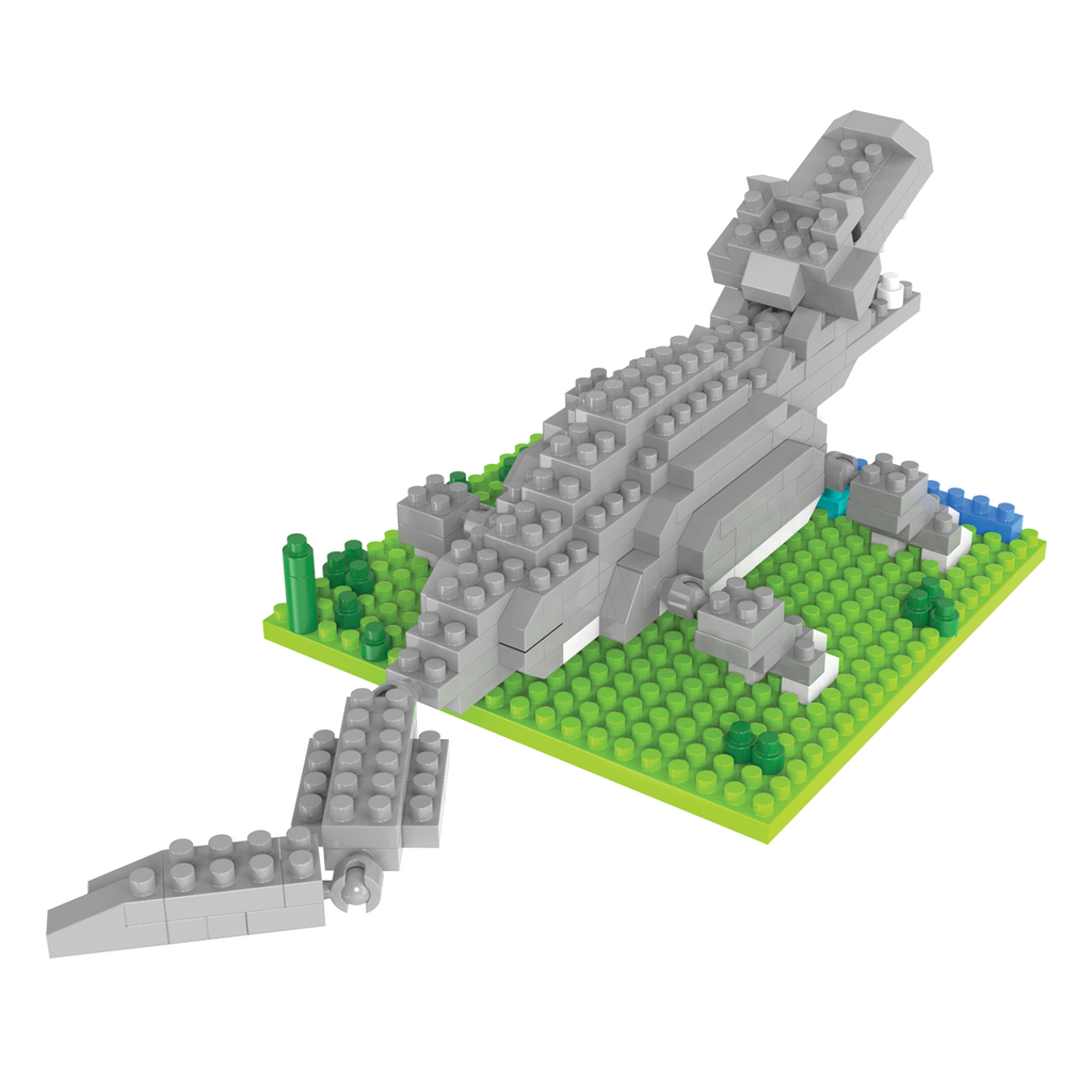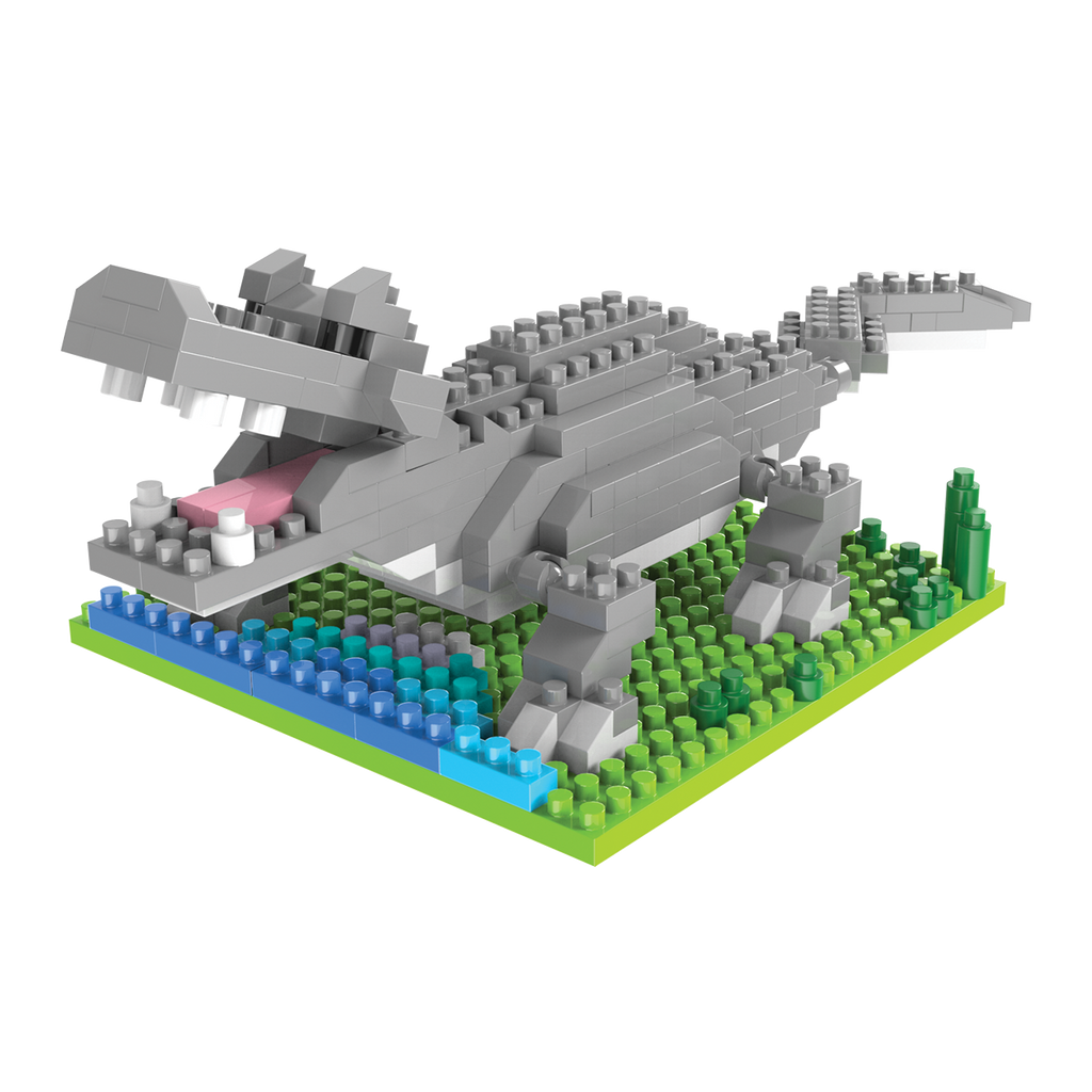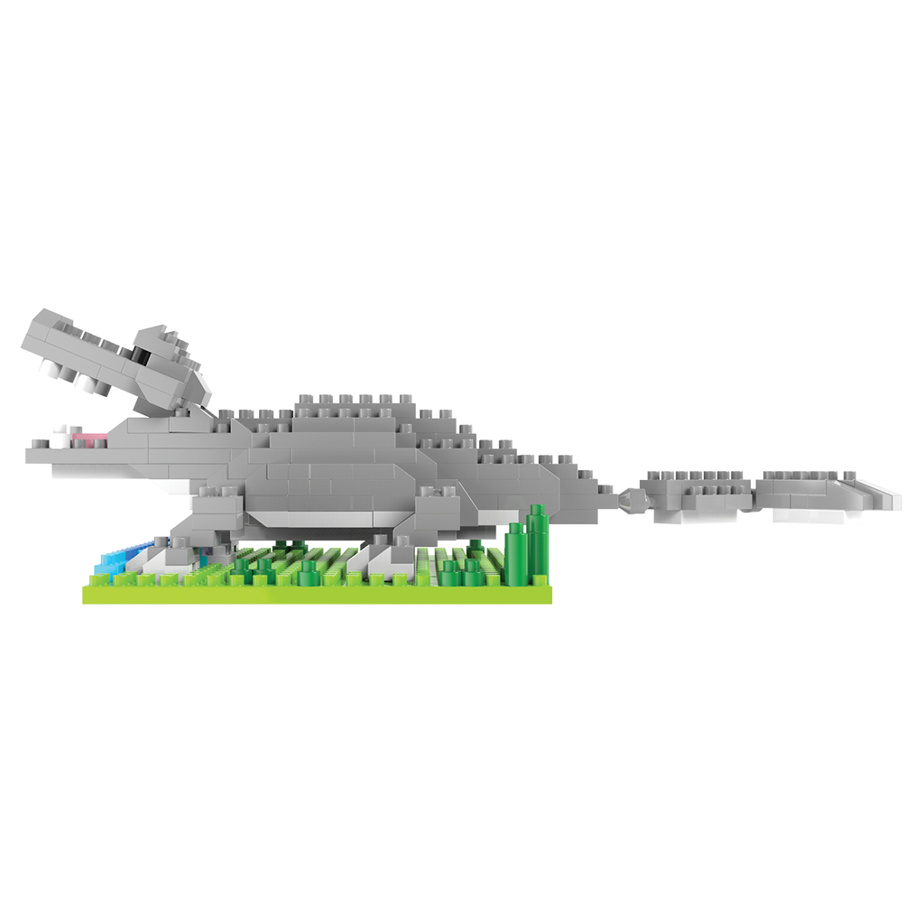 Constructing this impressive alligator is both fun and educational, promoting fine motor skills while sparking creativity. Each piece fits together seamlessly to form the alligator’s armored body, powerful jaws, and expressive eyes, resulting in a lifelike and dynamic model. The set includes a sturdy green and blue base, creating a naturalistic platform that simulates a wetland environment, enhancing the display's authenticity.