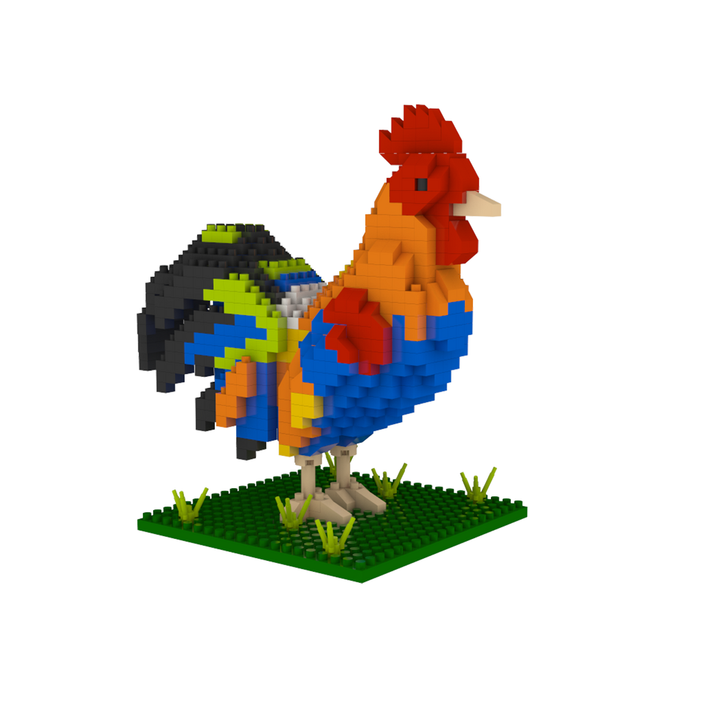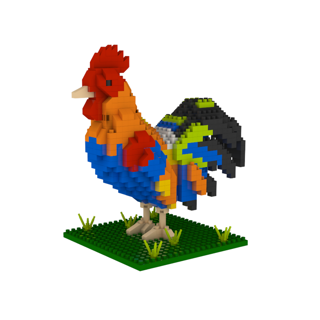 Bring a splash of vibrant color and personality into your space with our Florida Rooster mini building block set! This kit contains 400 pieces that, when assembled, create a lively depiction of a Florida rooster standing proud on a grassy patch. Measuring approximately 4.5 inches tall and 5 inches wide, this cheerful figure is sure to be a standout component of any display, whether it's on a shelf, desk, or as part of a playful centerpiece.