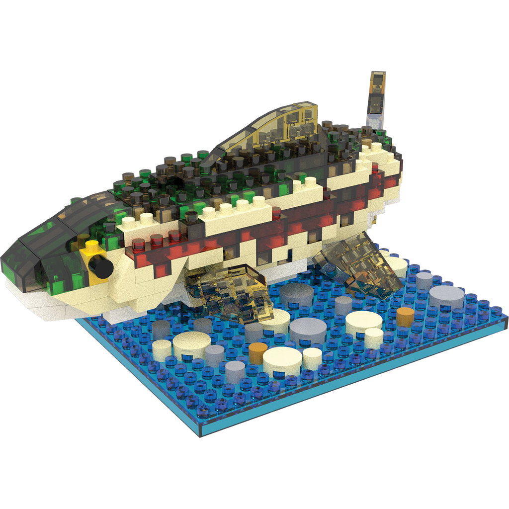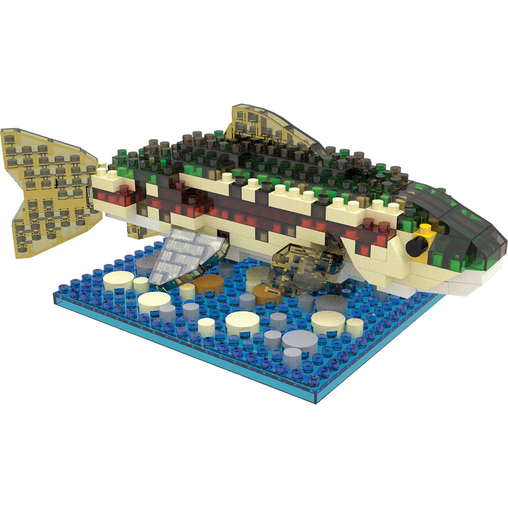 Dive into the colorful underwater world with the Mini Building Blocks Rainbow Trout set! This vibrant kit includes 364 pieces, perfect for builders aged 12 and up. The completed model measures over 4 inches long and 3 inches tall, capturing the striking beauty and distinctive markings of the rainbow trout in intricate detail. This lifelike figure, set on a realistic aquatic base, brings the serene atmosphere of freshwater streams into your home.