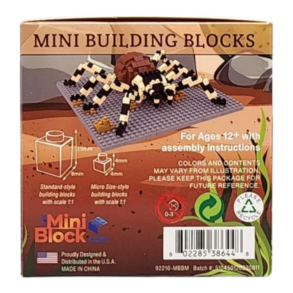 Whether displayed as a captivating addition to a collection or used as a playtime companion for imaginative adventures, the Mini Building Blocks Tarantula set is sure to intrigue and delight. Embrace the beauty and complexity of nature with this remarkable building experience and let the tarantula be your guide to the wonders of the wild.