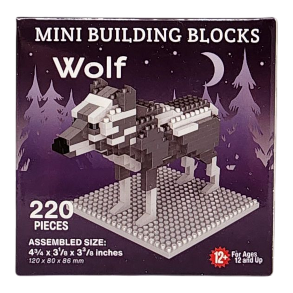 Unleash the wild with the Mini Building Blocks Wolf set! This thrilling kit includes 220 pieces, perfect for builders aged 12 and up. The completed model stands almost 4.75 inches tall and just over 3 inches long, capturing the fierce and majestic presence of the wolf with intricate detail. This lifelike figure, set against a backdrop of moonlit wilderness, brings the spirit of the untamed forest right into your home.