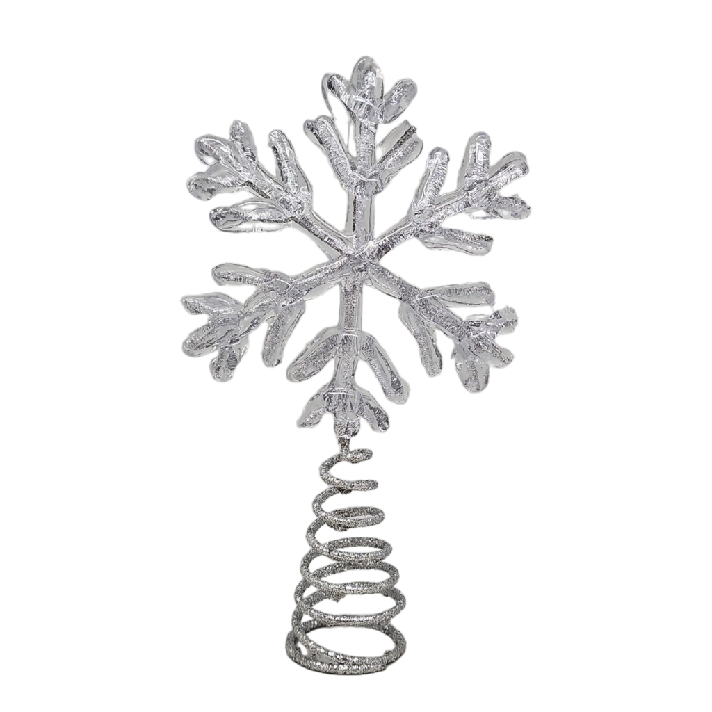 Browse the Complete Gifts & Holiday Collection Embrace the enchanting allure of winter with our 7-inch Clear Snowflake Tree Topper. This exquisite piece showcases a beautifully detailed snowflake design rendered in clear, shimmering materials, reminiscent of glistening ice crystals. Perched atop a sleek, silvery spiral base, this elegant tree topper ensures easy placement and stability on your Christmas tree, adding a sophisticated touch to your holiday décor.