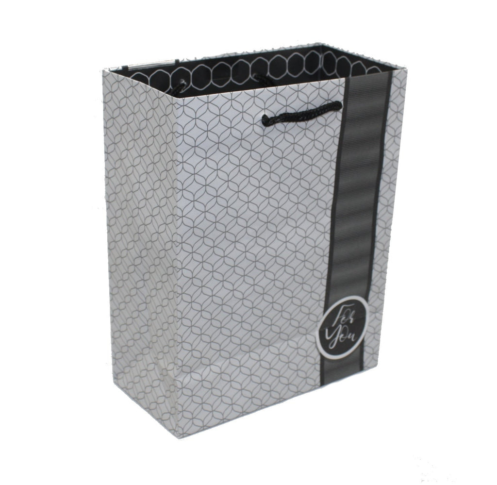 This classic all-occasion modern foil stripe gift bag includes a coordinating gift tag